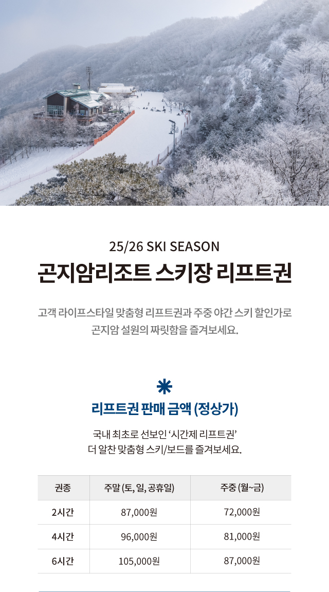 [스키] 25/26 시즌 곤지암리조트 스키장 리프트권 안내