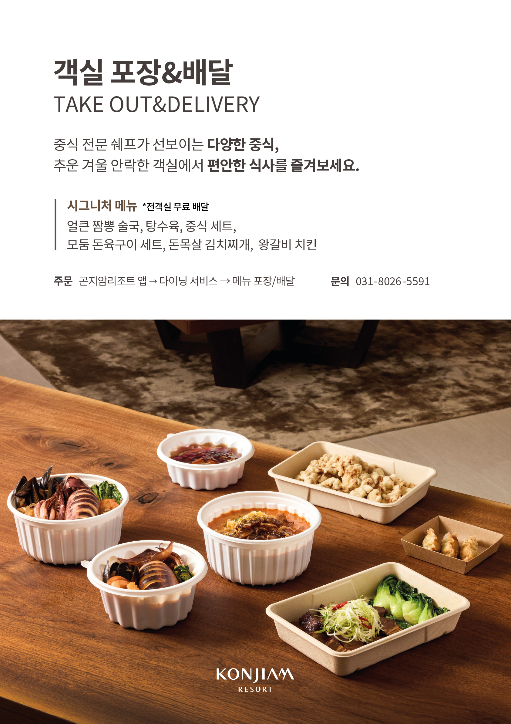 전 객실 무료 배달 가능하며, 문의 전화는 031-8026-5591입니다.”